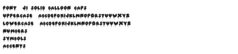 JI Balloon Caps เป็นแบบอักษรที่ออกแบบมาเฉพาะสำหรับ Windows ซึ่งมีลักษณะการแสดงผลที่ไม่เหมือนใครและสะท้อนถึงความสนุกสนานของลูกโป่งที่พองตัว แบบอักษรนี้มีรูปแบบตัวอักษรที่กลมและฟูฟ่อง ซึ่งมีสายที่ห้อยอยู่ที่น่ารัก ทำให้เป็นตัวเลือกที่เหมาะสมสำหรับหัวข้อข่าวและโลโก้ที่มีชีวิตชีวา รุ่นที่เป็นแบบหนามีรูปทรงหนาที่ดึงดูดความสนใจ ในขณะที่สไตล์แบบเส้นขอบให้ความรู้สึกที่เบากว่า เหมาะสำหรับการออกแบบที่มีหลายชั้น ตัวอักษรพิมพ์ใหญ่แต่ละตัวถูกสร้างขึ้นด้วยเส้นโค้งที่นุ่มนวลและรูปแบบที่กว้างขวาง สร้างบรรยากาศที่เชิญชวนและมีงานเฉลิมฉลองที่เหมาะสำหรับการใช้งานที่หลากหลาย รวมถึงการเชิญชวนไปงานปาร์ตี้และบรรจุภัณฑ์สำหรับเด็ก
